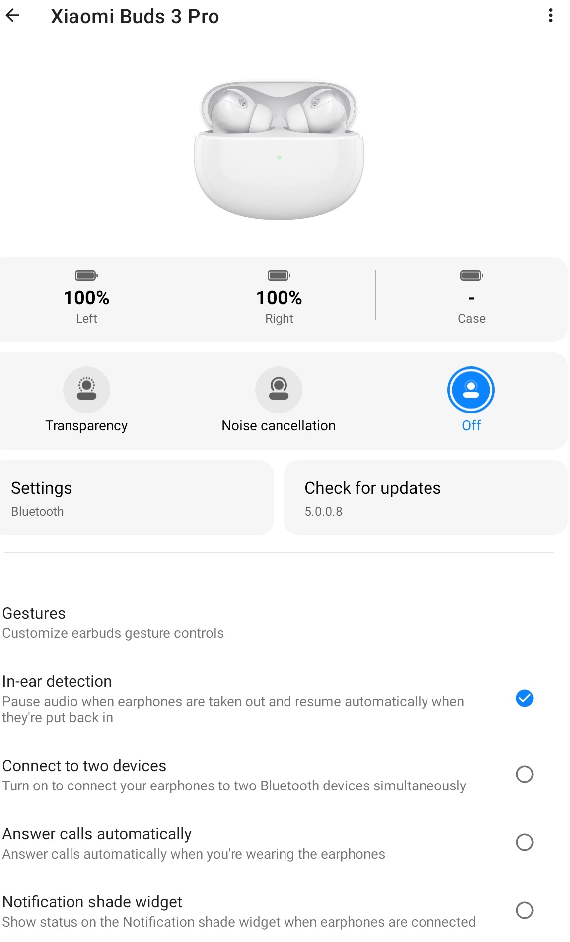 소음 감소 조정, 버튼 설정, 멀티페어링 설정, 자동응답, 위젯, 정착용 확인 등 많은 기능이 있습니다.
