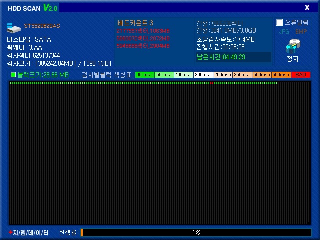 단 1% 진행률인데도 불구하고, 배드 섹터가 벌써 3개나 발견되어서