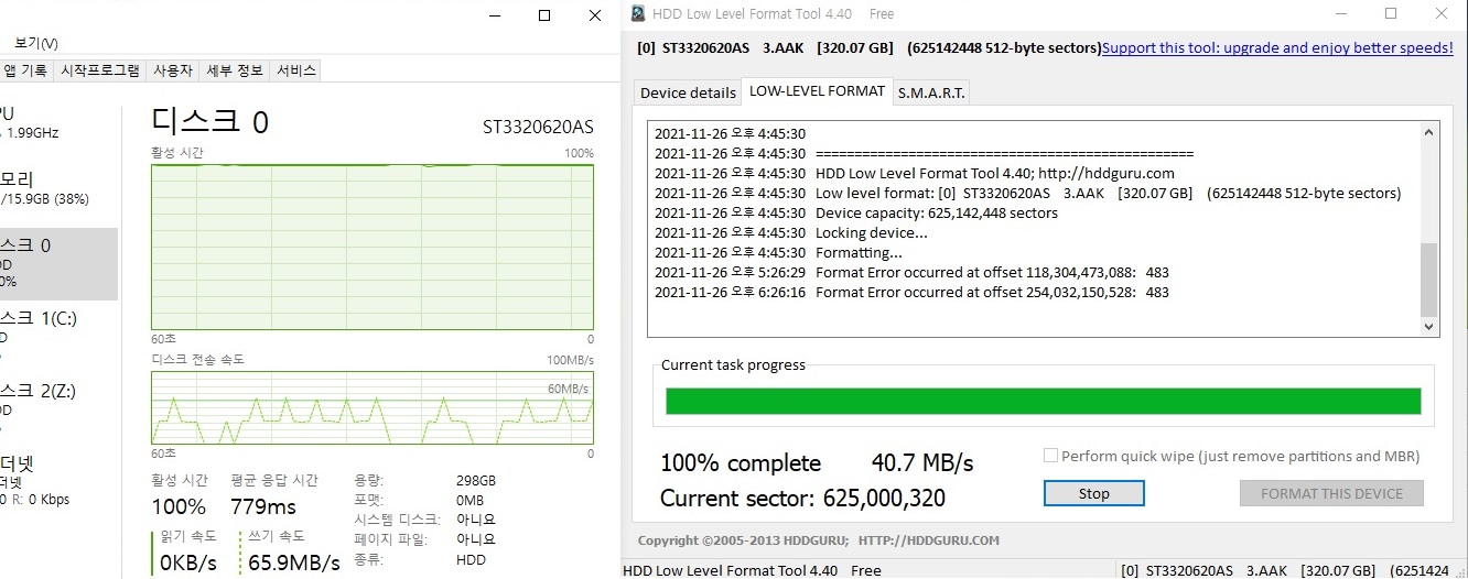 - 2021.11.29 :: HDD 배드 섹터, 하드 로우 포맷