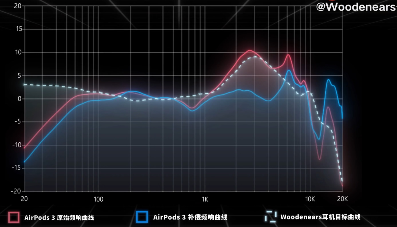 좌측 그래프는 0DB 사이트에서 표시한 하만타겟을, 우측 그래프는 중국에서 측정한 에어팟3의 측정치입니다