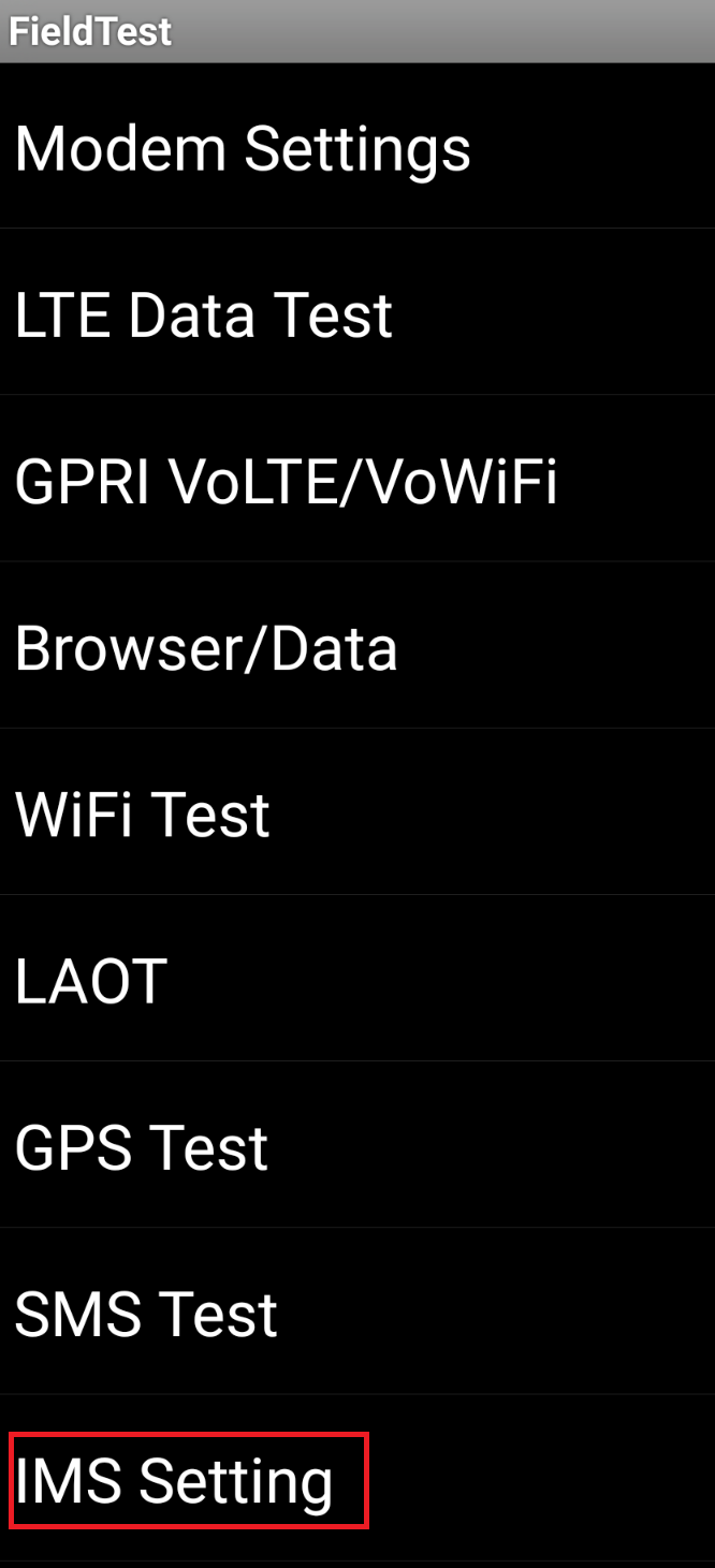 그 후 Field Test -> IMS Setting으로 접속합니다. 여기서 아무것도 안뜰 경우, USim을 빼면 접속 가능합니다.