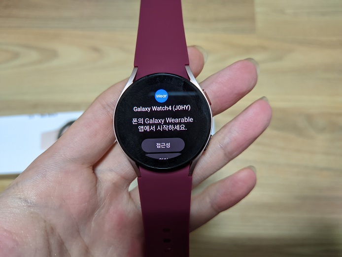 미리 주문해뒀던, 와인레드 색상의 스트랩을 바로 장착해주고 전원을 켭니다.