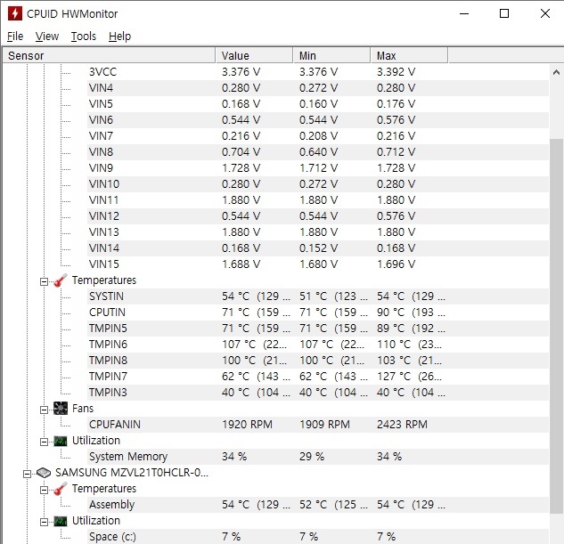 방열판을 괜히 구입한 게 아닐까 싶은 온도입니다.