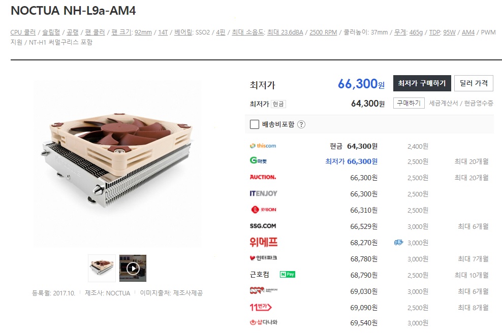 기본으로 제공되는 쿨러가 소음이 심하다는 얘기가 있어서, 주로 사용하는 녹투아 제품을 검색해보니
