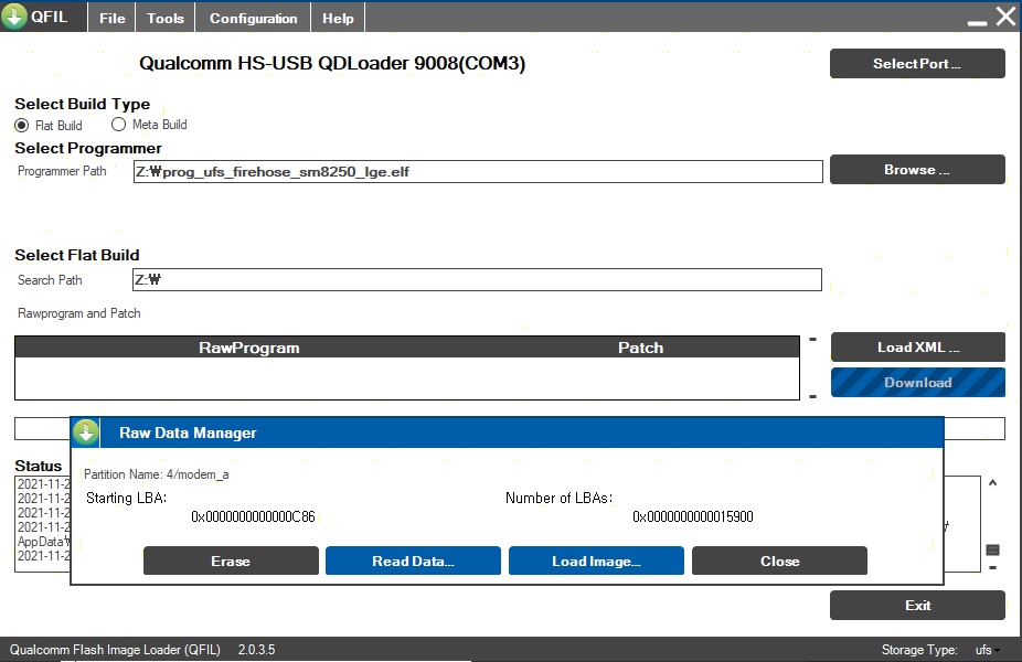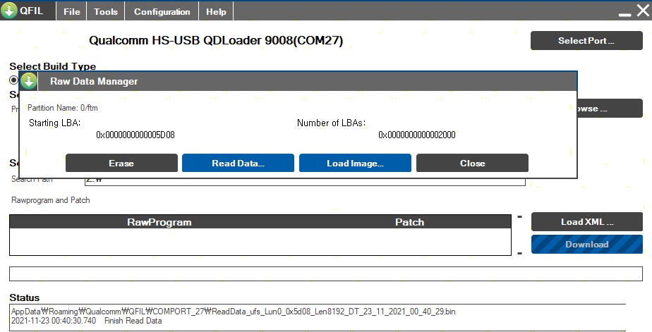 QFIL을 통해서 혹시 모를 사태에 대비해서 백업을 진행합니다.