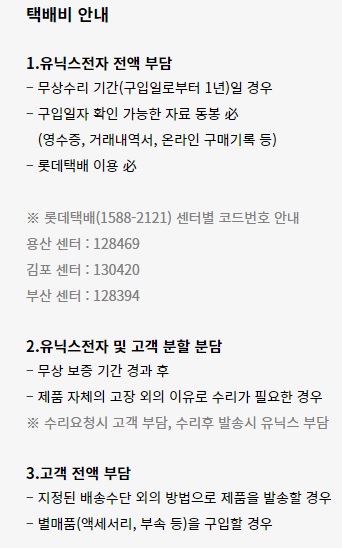 또한 보통 구입후 한달정도만 왕복택배비를 부담해주는 경우가 많은데, 무상기간 이내면 왕복택배비까지도 부담해줍니다