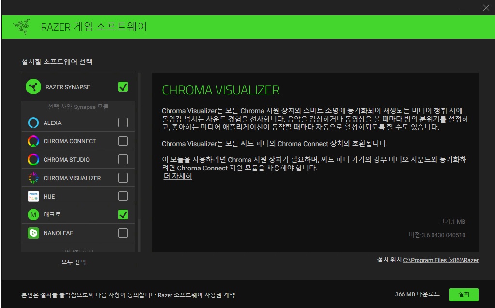 그래서 매크로만 선택하고 설치했습니다
