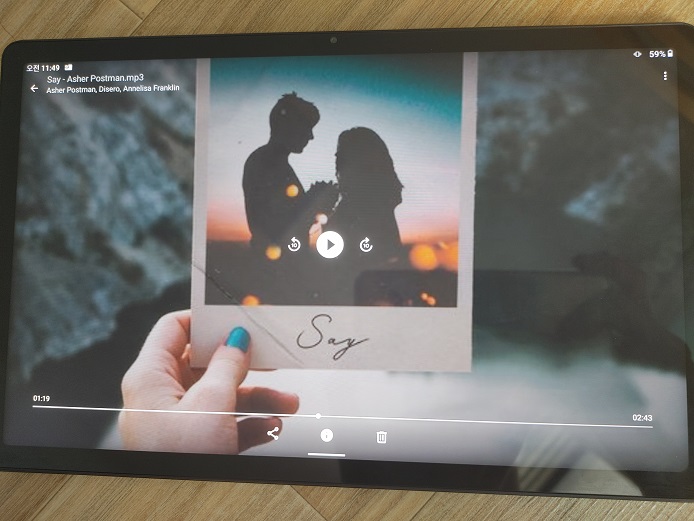 다만 모바일 기기치고는 고출력의 1.3W, 1W 스피커로 스테레오를 구성하여 볼륨이 높고 깔끔한 소리입니다.