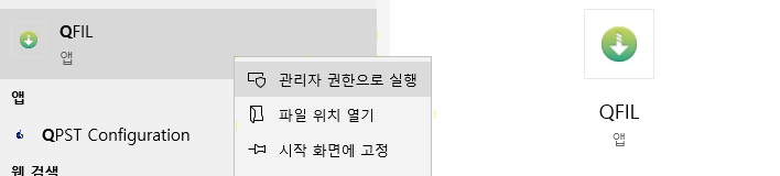 1. QFIL은 우측 클릭 후 관리자 권한으로 실행해주세요