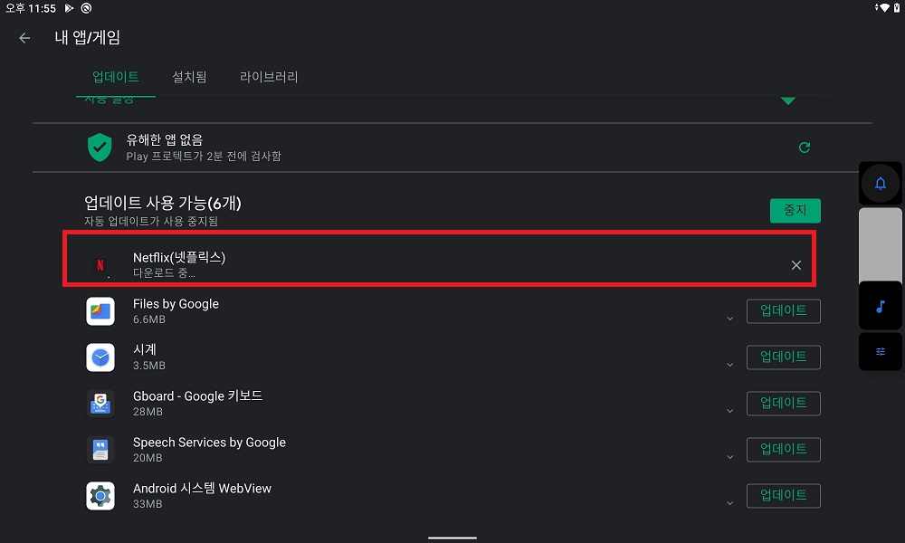 위 작업 이후에는 글로벌롬을 올리더라도 각종 앱들(넷플릭스 등)을 자동으로 업데이트를 할 수 있습니다