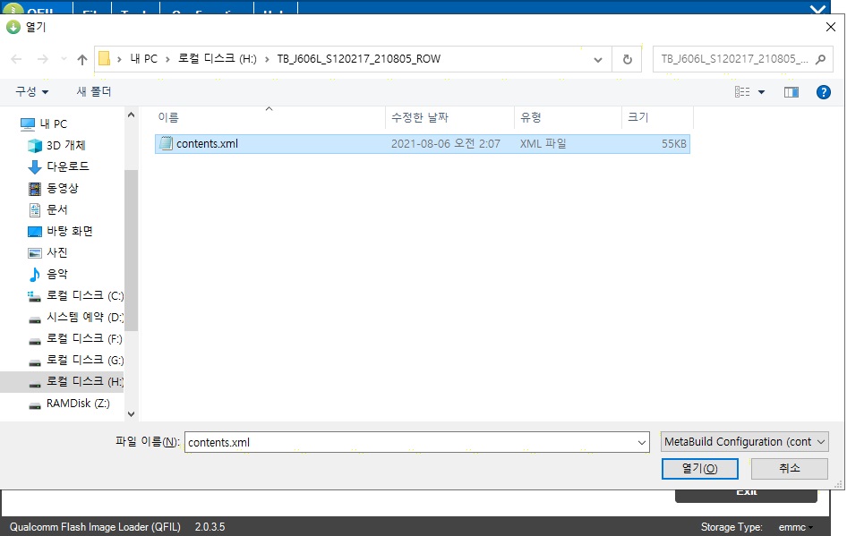 4. Load Content를 누르고 사전 준비에서 압축을 해제한 폴더를 찾아가서 아래와 같이 contents.xml 파일을 선택합니다.