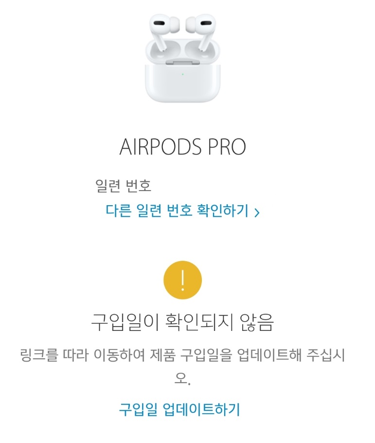위와 같이 구입일이 확인되지 않는 경우, 구입일을 수동으로 업데이트해줘야 합니다.