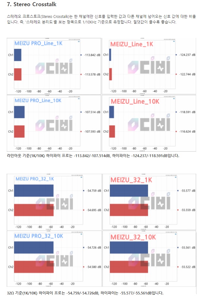 대체적으로 소나타는 좋은 측정치를 보여주지만, 저 임피던스 리시버를 활용할 경우 크로스토크 수치가 안 좋아지는 현상이 나타나는데요