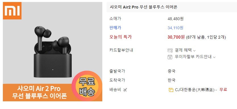 우연하게도 샤오미 air2 pro가 말도 안 되는 가격에 할인한다는 얘기가 있어서 찾아보았습니다.